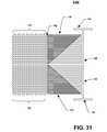 FIG. 29-31 are top views of at least a portion of a dual bit type memory array, with various shaped salicide block region(s) in accordance with one or more aspects of the present invention; and