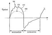 In addition, the present invention contemplates determining the estimated patient flow Qpatientbased on other characteristics of the pressure support system. For example, the operation of the gas flow/pressure generator or a flow/pressure controller, such as a valve, is affected by the flow in the patient circuit, or by the systems attempt to maintain the pressure in the system. As a result, monitoring a characteristic of the system, such as monitoring the power, torque, and/or rotating speed of the pressure generator or the position of the valve, can be used as a surrogate for measuring the patient flow directly. It is also known to measure patient flow using a flow sensor upstream of the gas flow/pressure generator. Of course, any combination of such flow measuring techniques can also be used. In these latter cases, an estimation of patient flow Qpatientbased on the measured flow or other parameter will be needed.
