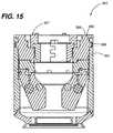 FIG. 14 is a perspective view showing an embodiment of an upper stripper rubber apparatus using a bayonet style interconnection between the canister body thereof and canister body lid thereof.