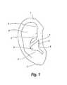 FIG. 14 shows an earpiece38 according to a third embodiment of the invention. This earpiece38 comprises a contact element molded in a resilient material so as to have the general appearance of a half-circle. The contact element comprises a hub39 comprising a number ofnotches34.