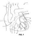 FIG. 1 is a schematic diagram of a heart from an anterior perspective illustrating the coronary venous system about an epicardial surface of the heart, including dashed lines depicting a portion of coronary venous system on an opposite, posterior epicardial surface of the heart;