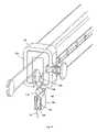 Referring now to FIGS.1 and31-34, thewheelchair stabilization member34 is a U-shaped body having twoarms226 and228 that extend forward from thebase38 of the central housing. Thearms226 and228 are spaced apart from one another a sufficient distance for allowing awheelchair230 of conventional size to easily fit therebetween (as shown inFIG. 31). Thearms226 and228 are substantially identical to one another, and will now be described with reference to theleft arm226 only. A spoolingmember229 is located within thearm226 and generally includes proximal anddistal spools232 and234, proximal anddistal retracting cables236 and238, amaster axle240, alocking gear242, and a push-lock244.