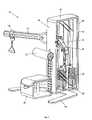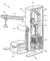 Eachweight stack50 and52 includes a plurality ofconventional weight plates62 and64 that are slidably mounted onvertical support shafts66,68,70, and72 (SeeFIG. 23: shaft66 is not within view, but is substantially identical to shafts68-72). The configuration of the pulleys within thecentral housing12 causes any force that is transmitted through eitherflexible member54 and56 to be directed toward lifting a predetermined number of weight plates of acorresponding weight stack50 and52 upwardly on alift shaft74 and76, along the support shafts66-72. Although a particular configuration of pulleys, flexible members, and weight stacks is represented in the previously described figures, it will be appreciated that various other conventional and equivalent configurations are contemplated for achieving similar operative relationships. For example, it is contemplated that a single flexible member can be used to link both user interfaces to a single weight stack.