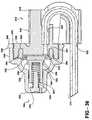 FIG. 10 is a partially cross-sectional side view taken along line10-10 inFIG. 9 illustrating a seal disposed about the plunger being depressed by leak ribs extending from the port;
