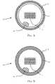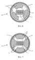 FIGS. 6,7,8, and9 depict cross-sectional views of optical fiber cables in which the coupling composition according to the present invention defines annular free space about the respective optical fiber ribbon stacks.