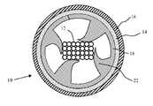 FIG. 10 illustrates the “coupling space” of theoptical fiber cable10 depicted inFIGS. 4 and 10. (For clarity,FIG. 10 omits theoptical fiber element12.)FIG. 11 depicts another cross-sectional view of the kind ofoptical fiber cable10 depicted inFIG. 4.