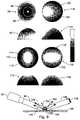 Scattering pattern118 shows a top view of a scattering pattern for a COP defect type having a size of 70 nm illuminated at an oblique incidence angle. A narrow channel of the inspection system described herein would collectportion120 of the scattering pattern while a wide channel of the inspection system would collectportion122 of the scattering pattern outside of the narrow channel.Scattering pattern124 shows a side view ofscattering pattern118. In contrast withscattering pattern118, scatteringpattern130 shows a top view of a scattering pattern for a COP defect type having a size of 70 nm illuminated at a normal incidence angle. A narrow channel of the inspection system described herein would collectportion132 of the scattering pattern while a wide channel of the inspection system would collectportion134 of the scattering pattern outside of the narrow channel.Scattering pattern136 shows a side view ofscattering pattern130.