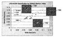In general, when plotted as described above, the sizes of COP defect types on PWs determined as described above are clustered together separately from the sizes of the scratch and LPD defect types determined as described above. In addition, the sizes determined for the COP defect types can be generally separated from the sizes determined for the scratch and LPD defect types byline186 shown inFIG. 10. Therefore, sizes determined as described above for defects that are of an unknown type may be plotted in a graph with this line (which may be a linear slope, vertical or horizontal line, as well as a polynomial fitting curve), and the position of the sizes with respect to this line may be used to determine the defect type.