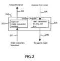 FIG. 2 shows a flow diagram of an example in-line scanning sequence performed by anetwork security computer250. The scanning is in-line in that it is performed on network data in transit between two computers communicating in a connection. In the example ofFIG. 2, thesecurity computer250 scans network data exchanged between a client computer and a server computer. The in-line scanning sequence begins with the client computer initiating connection by sending packets (“client packets”) to the server computer (arrow201). The client packets are received by thesecurity computer250, which scans the client packets for viruses and creates connection tracking information (box202). A connection tracking information identifies the computers communicating in a particular connection. Thesecurity computer250 forwards the client packets to the server computer (arrow203), which responds by sending packets (“server packets”) to the client computer (arrow204). Thesecurity computer250 receives the server packets, checks its connection tracking information to identify the client computer as the intended recipient of the server packets, and then scans the server packets for viruses (box205). Thesecurity computer250 forwards the server packets to the client computer (arrow206).