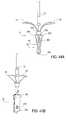 To assist in inserting thefixation device14 through ahemostatic valve1090, a fixation device introducer may be used. For example, when thefixation device14 is loaded on adelivery catheter300 and aninner guide catheter1020, insertion of thefixation device14,delivery catheter300 andinner guide catheter1020 through anouter guide catheter1000 involves passing thefixation device14 through ahemostatic valve1090 on theouter guide catheter1000. To reduce any trauma to thefixation device14 by thehemostatic valve1090, a fixation device introducer may be used. An embodiment of afixation device introducer1420 is illustrated inFIG. 76B. Theintroducer1420 includes aloading body1422 and aninsertion endpiece1424. Thefixation device14 is loaded into theloading body1422 and into theinsertion endpiece1424 to approximately the dashedline1428. Theinsertion endpiece1424 has a split end creatingindividual split sections1430, in this embodiment, foursplit sections1430. By compressing thesplit sections1430, theendpiece1424 forms a taper. Such a taper is then inserted through ahemostatic valve1090, so that theinsertion endpiece1424 creates a smooth passageway through the valve for thefixation device14. Once theinsertion endpiece1424 is inserted through thevalve1090, thefixation device14, and attacheddelivery catheter300 andinner guide catheter1020, may then be advanced through thefixation device introducer1420. Thefixation device introducer1420 also includes a hemostatic valve within theloading body1422 to prevent any backbleeding or leakage through theintroducer1420.