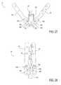 FIGS. 27-28 illustrate an additional embodiment of the fixation device wherein separation of couplers rotate the distal elements around pins.