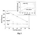 4. Preferred EmbodimentsGiven a large enough flow rate or bead diameter, or a short enough molecular tether, FFD in principle can generate enough force to break any chemical bond. In most practical applications, FFD can be used to identify or separate according to the required rupture force populations of molecules bound to a surface by a plurality of different bond strengths as long as the difference in the binding strengths is larger than variations in the force-times-barrier lengths. Force variations would include those caused by roughness or shadowing of flow across one bead by a nearby upstream bead. For molecules with dissociation energetics that include multiple potential energy wells, such as many biological macromolecules, FFD using pulsed flow could potentially remove a relatively greater number of more weakly bound micro-particle labels than strongly bound ones because of the relatively longer times required to cross multiple energy barriers. FFD could also be used as a step in preparing a surface with a specific type or types of molecules from a surface with an initial mixture of a plurality of molecules by selectively attaching microparticle labels to only those types to be removed. After FFD, chemical methods (e.g., a change in pH) could be used to remove the label. Similarly, FFD could be used to adjust the density of molecules on a surface by randomly attaching labels to some fraction, removing them by FFD, and then removing the labels.