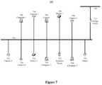 FIG. 7 shows an illustrative topological display as generated bytopological map module308 ofFIG. 3. The display shows an interface to view and manage topological display of all networked devices. The display shows IP addresses of all devices, as well as any other device information, such as MIB information obtained from SNMP agents that reside on the devices. The icons also show the network status of all devices (whether the device is connected, disconnected, awake, asleep, etc.). The icons blink, change color, or in some other way indicate a disconnected device or no signal to the device. The lines connecting the devices to the backbone of the network may optionally show status of the interconnections by displaying maximum (e.g., 100 MBs, 10 MBs, etc.) and current bandwidth (whether busy, congested, free, etc.). The lines may optionally blink, change color, or otherwise indicate when there is no network connectivity and/or bandwidth is insufficient for video streams.