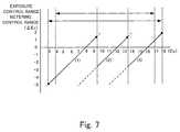 First, for the accumulated data (1), the iris aperture, electronic shutter speed, and the like are adjusted so thatEV 8 will be a proper exposure, an exposure is made, and metering is performed for areas which fall within a range ofEV 3 to EV 9.5 out of areas (e.g., 128 areas) obtained by dividing the subject field. Next, for the accumulated data (2), the iris aperture, electronic shutter speed, and the like are adjusted so thatEV 12 will be a proper exposure, an exposure is made, and metering is performed for areas which fall within a range of EV 9.5 to EV 13.5. Then, for the accumulated data (3), the iris aperture, electronic shutter speed, and the like are adjusted so thatEV 16 will be a proper exposure, an exposure is made, and metering is performed for areas which fall within a range of EV 13.5 toEV 18. Consequently, metering is performed for all the areas except when the subject field is particularly dark. Furthermore, for the accumulated smear data (3), an exposure is made under the same conditions as the accumulated data (3) and the charge accumulated by the exposure is read out without being transferred to the transfer channel. For a still image, metering is performed for a wide luminance range using four frames, AE computations for the still image are performed based on the results of metering (accumulated data) for the four frames, and the exposure value for the still image is determined. Here, the metering is performed in a range ofEV 3 toEV 18, but the exposure value is adjusted within a range ofEV 4 toEV 17.