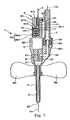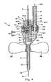 The shutter means92 can be displaced between a first posture (the posture shown inFIG. 2) such that the most part of the shutter means92 is retracted into the recessedpart912 and theinner needle4 can be inserted in theinner needle passage911 and a second posture (the posture shown inFIG. 3) such that a part of theshutter member921 enters theinner needle passage911 to inhibit the passage of theneedle point41 of theinner needle4.