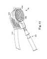 FIG. 11 is a perspective view of yet another distal injection head employing inflatable balloons for withdrawing needles and another inflatable balloon for transversely driving needles into tissue and/or stabilizing the head;