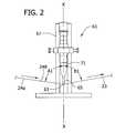 In one particularly suitable embodiment, theultrasonic vibration system61 is adjustably mounted on thesupport frame67 for movement relative to the support frame (e.g., vertically in the embodiment illustrated inFIG. 2) and the unwind and wind rolls45,49 to permit adjustment of thecontact surface63 of the ultrasonic vibration system relative to theweb23 to be treated. For example, theultrasonic vibration system61 is selectively positionable between a first position (not shown) at which the approach angle A1 and departure angle B1 of the web is substantially zero or at least relatively small, and a second position illustrated inFIGS. 1 and 2. In the first position of thevibration system61, thecontact surface63 of the vibration system may but need not necessarily be in contact with thetextile web23.