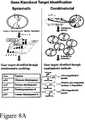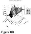 FIG. 8 depicts various parameters obtained for identified systematic and combinatorial gene knockout targets.FIG. 8A shows systematic targets (illustrated on the left) identified through the use of global, stoichiometric modeling to identify gene knockouts which were in silico predicted to increase lycopene by increasing either cofactor or precursor supply. Combinatorial targets (shown on the right) were identified through the use of transposon mutagenesis. These targets were combined to create the unique set of 64 mutant strains used in this study.FIG. 8B graphically represents the metabolic landscape depicting the maximum lycopene production over the course of a 48 hour shaker-flask fermentation.FIGS. 8C, D and E demonstrate clustering analysis depicting the interaction of systematic and combinatorial targets. Lycopene production profiles across the 48 hour shaker-flask fermentation are clustered, resulting in the dendrograms as shown. In panel C, the purely systematic strains have a stacked dendrogram which is visually illustrated with a concentric bubble-plot. Conversely, the addition of a combinatorial target, hnr in this case, decouples the systematic design and causes a disjoint pattern in the dendrogram and bubble-plot. This has the implication that local, metabolic gene targets are more accessible through a sequential search than global, regulatory targets which require a simultaneous search which is sensitive to the genetic background of the strain. Panel E compares the average, relative production profiles for the three clusters shown in Panels C and D.