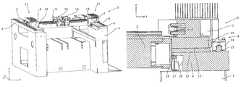 Eachslide6,7 further comprises an I-section17 extending in the Y-direction and anelongated magnet18 connected to said I-section17. Themagnet18 is located on a side of thefirst part13 remote from thesecond part14, whilst furthermore apart19 of the metal Y-beam3,4 is located between thefirst part13 and themagnet18. The magnetic strips are accurate connected topart19. Themagnet18 is polarised in the Z-direction, one pole being located on a side facing towards thefirst part13.