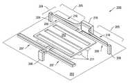 FIG. 2A is a perspective view of an illustrative shutter-basedlight modulator200 suitable for incorporation into the MEMS-baseddisplay apparatus100 ofFIG. 1A, according to an illustrative embodiment of the invention. The shutter-based light modulator200 (also referred to as shutter assembly200) includes ashutter202 coupled to anactuator204. Theactuator204 is formed from two separate compliant electrode beam actuators205 (the “actuators205”), as described in U.S. patent application Ser. No. 11/251,035, filed on Oct. 14, 2005. Theshutter202 couples on one side to theactuators205. Theactuators205 move theshutter202 transversely over asurface203 in a plane of motion which is substantially parallel to thesurface203. The opposite side of theshutter202 couples to aspring207 which provides a restoring force opposing the forces exerted by theactuator204.