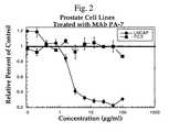 FIG. 2 is a graph that shows inhibition of LnCaP prostatic carcinoma cell growth in a monolayer by mPA7.