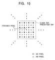 FIG. 10 is a view showing a class tap and a prediction tap to be processed by the image processing apparatus shown inFIG. 9.