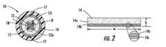 In other embodiments,first layer14aofdry insert14 is uncompressed intube assembly10, but begins to compress if optical waveguide movement is initiated. Other variations include attaching or bonding a portion ofdry insert14 totube18. For example, adhesives, glues, elastomers, and/orpolymers14care disposed on a portion of the surface ofdry insert14 thatcontacts tube18 for attachingdry insert14 totube18. Additionally, it is possible to helically wrapdry insert14 aboutoptical waveguide12, instead of being longitudinally disposed. In still further embodiments, two or more dry inserts can be formed about one or moreoptical waveguides12 such as two halves placed withintube18.