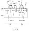 Next, a firstinsulating layer222 is conformably formed on thesubstrate200, covering thelogic device210 and thememory device216. The firstinsulating layer222 may be formed by a thin film deposition process, such as, chemical vapor deposition (CVD). The firstinsulating layer222 may comprise silicon dioxide (SiO2).