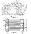 - (4) performing the steps illustrated inFIGS. 4A through 8A and4B through8B a second time to form a second nano-fin array crossing over and perpendicular to the first nano-fin array and connected at corresponding points along the nano-fins of the second nano-fin array to corresponding memory elements.