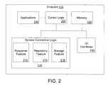 FIG. 2 is a block diagram example architecture forendpoint112 that includesservice connection logic170. InFIG. 2,endpoint nodes112's architecture is depicted as includingservice connection logic170,control logic220,memory230, input/output (I/O) interfaces240, and optionally one ormore applications250, each coupled as depicted.