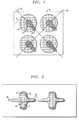 FIG. 1 is a diagram illustrating a top-down view of an exemplary array of electrical contacts. By way of example only, the two-by-two (2×2) array of electrical contacts shown inFIG. 1 may constitute a land grid array (LGA) interposer connector. Interposers with electrical contacts are described, for example, in U.S. patent application Ser. No. 10/715,288, filed Nov. 17, 2003, entitled “Interposer With Electrical Contact Button and Method,” the disclosure of which is incorporated by reference herein. Each electrical contact, for example,contact2, comprises anelastomeric bump4, e.g., comprising an elastic rubber. As will be described in conjunction with the description ofFIG. 2, below, there exists a similar corresponding elastomeric bump on a side ofcarrier8 oppositeelastomeric bump4.