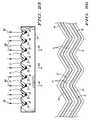 FIG. 21 is a fragmentary anterior plan view of the fluid filter structure otherwise depicted inFIG. 20 showing waveform current outlines relative to waveform peaks and waveform valleys.