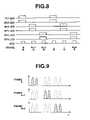 FIG. 33 is a timing chart showing a state of the operations for light emission of the LEDs and for image capturing by the image pick-up device, upon capturing the 8-band spectroscopic images according to the third embodiment;