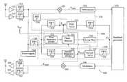 FIG. 5C is a block diagram ofexemplary demodulator356 andbaseband processor370 according to the invention.Demodulator356 comprisesfirst bandpass filter510 and firstfrequency modulation demodulator516. Firstbandpass filter510 is coupled tomixer355 to filter the mixed signal, and output a first bandpass signal. Firstfrequency modulation demodulator516 is coupled tofirst bandpass filter510 to perform demodulation on the bandpass signal, and outputs a first demodulated signal.Baseband processor370 is coupled to firstfrequency modulation demodulator516, comprisingsecond bandpass filter520,third bandpass filter530, and secondfrequency modulation demodulator522, thirdfrequency modulation demodulator532, andlow pass filter540.Second bandpass filter520 filters the first demodulated signal, and retrieves a second bandpass signal from the first demodulated signal. Secondfrequency modulation demodulator522 performs demodulation on the second bandpass signal to output a first baseband signal as audio1.Third bandpass filter530 filters the first demodulated signal to retrieve a third bandpass signal. Thirdfrequency modulation demodulator532 performs demodulation on the third bandpass signal to output a second baseband signal as audio2.Low pass filter540 filters the first demodulated signal to retrieve a video signal from the first demodulated signal.