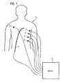 FIG. 1 shows a diagrammatic sketch of the arrangement of a catheter and of electrodes in a method according to the invention,