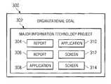 As part oforganizational goal300, majorinformation technology project302 is to be implemented to create a large scale information technology system project. An information technology system project is a system of data processing systems, applications, data, reports, flows, algorithms, databases, and other infrastructure used to maintain the data and operations of the organization. A large scale information technology system project is not necessarily located in one single physical location, but can be situated in many different physical sites implemented using numerous physical devices and software components. A large scale information technology system project can be referred to as a major information technology system project.