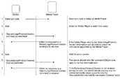 Accessories should use the general lingo identify command to identify themselves as supporting a single accessory lingo.FIG. 7 illustrates a single-lingo accessory command flow. In this command flow, first the accessory waits for media player internal bootstrap/wakeup and allows the media player to synchronize to the accessory rate. Next, the media player is informed that accessory is present and supports the Extended Interface lingo. Thereafter, the accessory gets (requests) the version of the extended interface lingo protocol supported by the media player and the media player sends the protocol version for verification. If received, the accessory has successfully forced the media player into extended interface mode. The accessory should use the returned lingo version to determine which features are available from the media player.