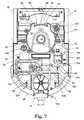 Referring toFIGS. 6 and 7, theupper base housing26 and thelower base housing28 define a space therebetween which receives a motor/fan assembly56 for generating a flow of working air through thevacuum cleaner10, apost-motor filter assembly58 for filtering the air exhausted by the motor/fan assembly56 for it enters the atmosphere, afluid pump60 for moving cleaning fluid from the solution tank assembly through thevacuum hose20 and afluid heater62 for raising the temperature of cleaning fluid to be distributed.