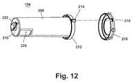 Referring toFIGS. 11 and 12, thediverter assembly198 is provided for switching operational modes of thevacuum cleaner10 between a dry mode and a wet mode. The dry mode is used when performing dry vacuuming and the wet mode is used when performing wet vacuuming or extraction cleaning. Thediverter assembly198 comprises an elongatedhollow diverter tube206 having a firstopen end208 and a secondclosed end210. Anannular flange212 is formed around the firstopen end208 and comprises atab214 extending outwardly from theflange212. Anannular diverter gasket216 is positioned on theflange212 and comprises a cut-outportion218 that is received by thetab214, so that thediverter tube206 is rotatably fixed with thediverter gasket216. Preferably thediverter gasket216 is overmolded on to theflange212, however, thediverter gasket216 can also be formed as a separate piece that is bonded to theflange212 in a conventional manner. Adiverter opening220 is formed in the side wall of thetube206 near the secondclosed end210 and is in fluid communication with theduct assembly200. Arotation hook222 is formed on the second closed end for rotatably coupling thediverter assembly198 to theduct assembly200. Adiverter receiver conduit224 is provided on theupper casing188 for receiving thediverter assembly198. Thevacuum cleaner10 can selectively be switched between the dry and wet modes of operation by rotating thetube206 using thediverter gasket216 to change to position of thediverter opening220 in relation to theduct assembly200, as will be presently described. Markings can be included on thediverter gasket216 or on theupper casing188 to indicate the selected mode to the user. Optionally, markings can be added directly on thetube206 to indicate wet or dry mode. This is particularly useful when theupper casing188 is made of a transparent material.