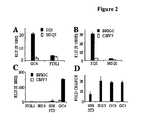 FIG. 2 shows expression of SREBP transcriptional activity in GC-4spc cells.FIG. 2A shows luciferase activity of GC-4spc and 3T3L1 cells transfected with human SQS promoter constructs containing either wild-type or mutated (MSQS) SRE sites.FIG. 2B shows luciferase activity after co-transfection of GC-4spc cells with wild-type or mutant SQS promoter plasmids together with either an expression vector for SREBP2gc (BP2GC) or the empty parent plasmid (CMV7).FIG. 2C shows luciferase activity after co-transfection of the rat proacrosin promoter together with SREBP2gc or pCMV7 expression plasmids in different cell lines.FIG. 2D shows luciferase activity from cell lines co-transfected with either SQS (NIH-3T3, GC-1spg) or CYP51 (JEG3, GC-4spc) promoter plasmids and expression vectors.