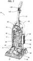 BACKGROUND OF THE INVENTIONThe present invention relates to upright vacuum cleaners and, more particularly, to an upright vacuum cleaner having a floor cleaning nozzle and an above-floor cleaning nozzle and two motor and fan units as vacuum sources.