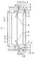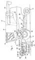The reel is equipped with six prong supports86 that are secured to supporting star shapedunits88 and that carryprongs84 that are respectively arranged next to one another. The position of the prong supports and that of theprongs84 during the rotation of thereel44 is varied by means of conventional control mechanisms, so that at all times, theprongs84 extend approximately downward from the prong supports and slightly toward the rear. The position of theprongs84 is preferably adjustable.