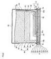 FIG. 8 is an enlarged view of thepiezoelectric actuator21 inFIG. 7. InFIG. 8, theCOF50 is depicted together with thepiezoelectric actuator21. Each of thepiezoelectric actuators21 has a laminated structure in which fourpiezoelectric layers41,42,43,44 are piled up on another. Thepiezoelectric layers41 to44 are composed of ferroelectric Piezoelectric Zicronate Titanate (PZT) based ceramics. On the uppermostpiezoelectric layer41, a number ofindividual electrodes35 are formed. Each of theindividual electrodes35 corresponds to thesingle pressure chamber9. One ends of the respectiveindividual electrodes35 are formed withlands36. Acommon electrode34 is interposed between thepiezoelectric layer41 and thepiezoelectric layer42. In the mean time, theCOF50 is disposed on the upper surface of thepiezoelectric actuator21. On the lower surface of theCOF50, a number ofbumps37 are disposed correspondingly to theindividual electrodes35. The lower surfaces of thebumps37 are covered withsoldering38. Through thesoldering38, thelands36 and thebumps37 are electrically connected. A driving signal supplied from theCOF50 is transmitted to theindividual electrodes35 through thebumps37, thesoldering38 and thelands36. Thereby, thepiezoelectric layer41 is deformed and the pressure is applied to the ink in thepressure chambers9 from thepiezoelectric actuators21, so that the ink is ejected from thenozzles8.