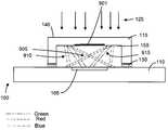 As part of thesensor device100, acap115 consisting of a silicon lid, into whichpatterns120 are etched, to form an individual diffracting optical element, is also provided. Anaperture stop901 is also included as part of the cap. The combination of the diffractive optical element and the aperture stop provide elements of a narrowband filter for the sensor. These elements in combination with the planar physical dimensions of theactive region105aof the sensing element are usefully employed in determination of the narrow band response characteristics of the sensor. This will be described in more detail below.
