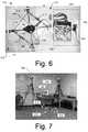 FIGS. 5 and 6 are enlarged schematic and plan views, respectively, of thetest vehicle410 in association with other components of thedevelopment system400.FIG. 7 shows thetest vehicle410 in operation within the control volume422 of thedevelopment system400. As best shown inFIG. 5, in this embodiment, thetest vehicle410 includes anonboard controller414 operatively coupled to a plurality ofrotor assemblies412 and to a power source416 (e.g. a battery). Acurrent sensor417 monitors an electrical current drawn by eachrotor assembly412, and athermistor418 monitors a temperature of eachrotor assembly412. In a particular embodiment, thetest vehicle410 is a modified version of a Draganflyer RC helicopter commercially available from Draganfly Innovations, Inc. of Saskatoon, Saskatchewan.