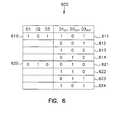 For example, ifvalue610 ofFIG. 6 is provided toportions531,532, and599 during a scan andvalue611 is obtained, then none ofportions531,532, and599 are defective becausevalues610 and611 are matched. However, ifvalue610 is provided toportions531,532, and599 during a scan andvalue612,613, or614 is obtained, then one ofportions531,532, and599 may be defective becausevalue610 and each ofvalues612,613, and614 are unmatched. For example, ifvalue610 is provided toportions531,532, and599 andvalue612 is obtained, thenportion531 may be defective because the value of bit D1 (provided to portion531) is “1” but the value of bit D1OUTis “0”, which is unmatched the value “0” of bit D1. In another example, ifvalue610 is provided toportions531,532, and599 andvalue613 is obtained, thenportion599 may be defective because the value of bit D3 (provided to portion599) is “1” but the value of bit D3OUTis “0”, which is unmatched the value “1” of bit D3. In another example, ifvalue610 is provided toportions531,532, and599 andvalue614 is obtained, thenportion532 maybe defective because the value of bit D2 (provided to portion532) is “0” but the value of bit D2OUTis “1”, which is unmatched the value “0” of bit D2.