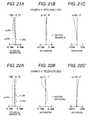 FIGS. 21A to 21C are graphic representations of aberrations at the wide-angle end in the zoom lens according to Example 3,FIG. 21A showing spherical aberration,FIG. 21B showing astigmatism, andFIG. 21C showing distortion;