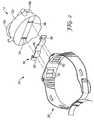 Therespiratory component161 includes first andsecond openings34aand36afor removably receiving the free ends164,166 of theclip160. Therespiratory component161 also includes first and second opposed detent surfaces198,200 adjacent the first andsecond clip openings34,36, respectively. Theopenings34aand36aof therespiratory component161 receive the free ends164,166 of theclip160 whereby thedetent tabs176,178 of theclip160 form a locking engagement with the detent surfaces198,200 of therespiratory component161. To attach or remove therespiratory component12 from thebelt20, the free ends164,166 of theclip160 are inserted into or removed from theclip openings34,36 in therespiratory component161.Detent tabs176,178 are pressed towards thesecond surface172 of theclip160 to facilitate insertion and removal of the clip from the respiratory component. At least the free ends164,166 of theclip160 are flexibly resilient to accommodate insertion and removal to and from theclip openings34,36 of therespiratory component161. Theintermediate portion162 of theclip160 is sufficiently flexible to weave through the mountingslots32 of thebelt20.