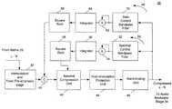 BothBTSC encoder24 andBTSC decoder78 include multiple filters that adjust the amplitude of audio signals as a function of frequency. In some prior art television transmission systems and reception systems, each of the filters are implemented with discrete analog components. However, with advancements in digital signal processing, some BTSC encoders and BTSC decoders may be implemented in the digital domain with one or more integrated circuits (ICs). Furthermore, multiple digital BTSC encoders and/or decoders may implemented on a single IC. For example, encoders and decoders may be incorporated into a single IC as a portion of a very large scale integration (VLSI) system.