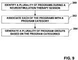 FIG. 9 is a flow diagram illustrating an example method that may be employed by a programming device to automatically generate program groups based on program categories associated with neurostimulation therapy programs.